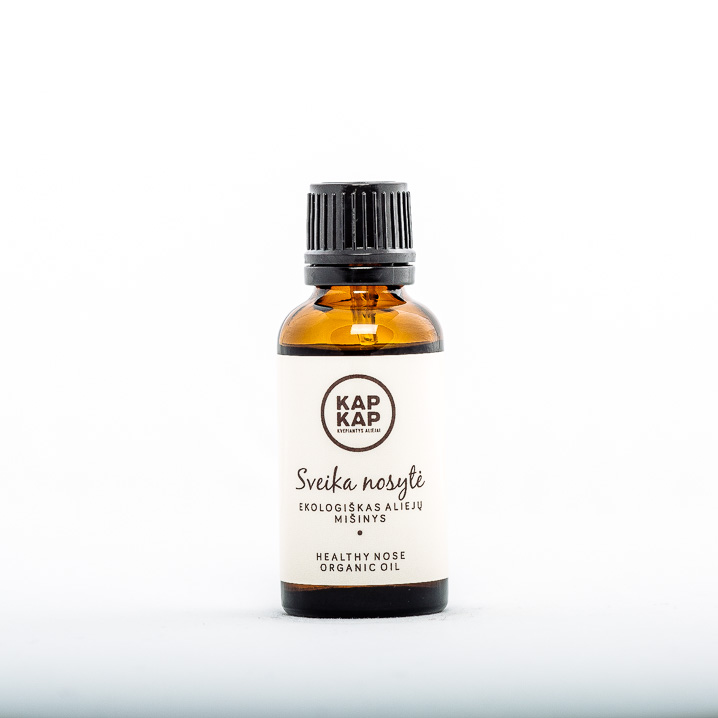 Sudėtyje yra dezinfekuojančias savybes turintis arbatmedžio eterinis aliejus bei migdolų augalinis aliejus. SVEIKA NOSYTĖ saugios koncentracijos aliejų mišinys, kuris užtikrina sveiką nosies gleivinės būklę, dezinfekuoja ir švarina orą, kuris patenka per kvėpavimo takus.