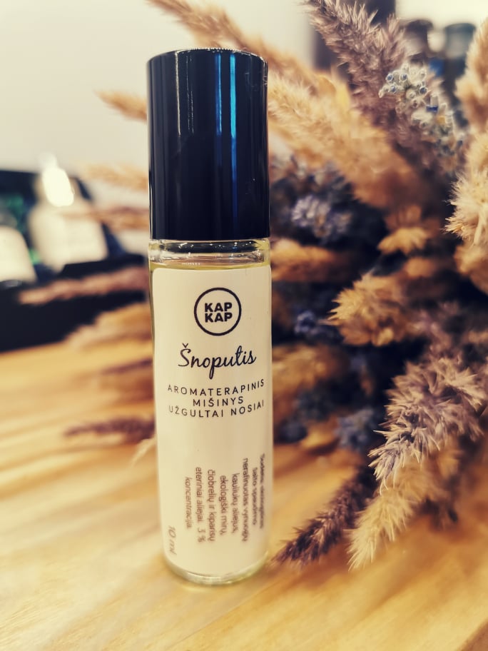 Aromaterapinis mišinys ŠNOPUTIS skirtas užgultai, išburkusiai nosiai. Sudėtyje esantys mirų, kiparisų ir čiobrelių eteriniai aliejai gali padėti esant lėtinei slogai, sinusitui. Tinka naudoti vaikams nuo 2 metų ir suaugusiems, gali palengvinti kvėpavimą, paskatinti gleivių valymąsi.